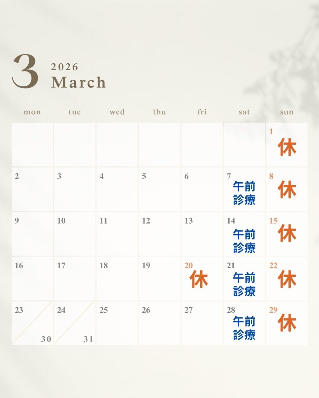 3月診療カレンダー